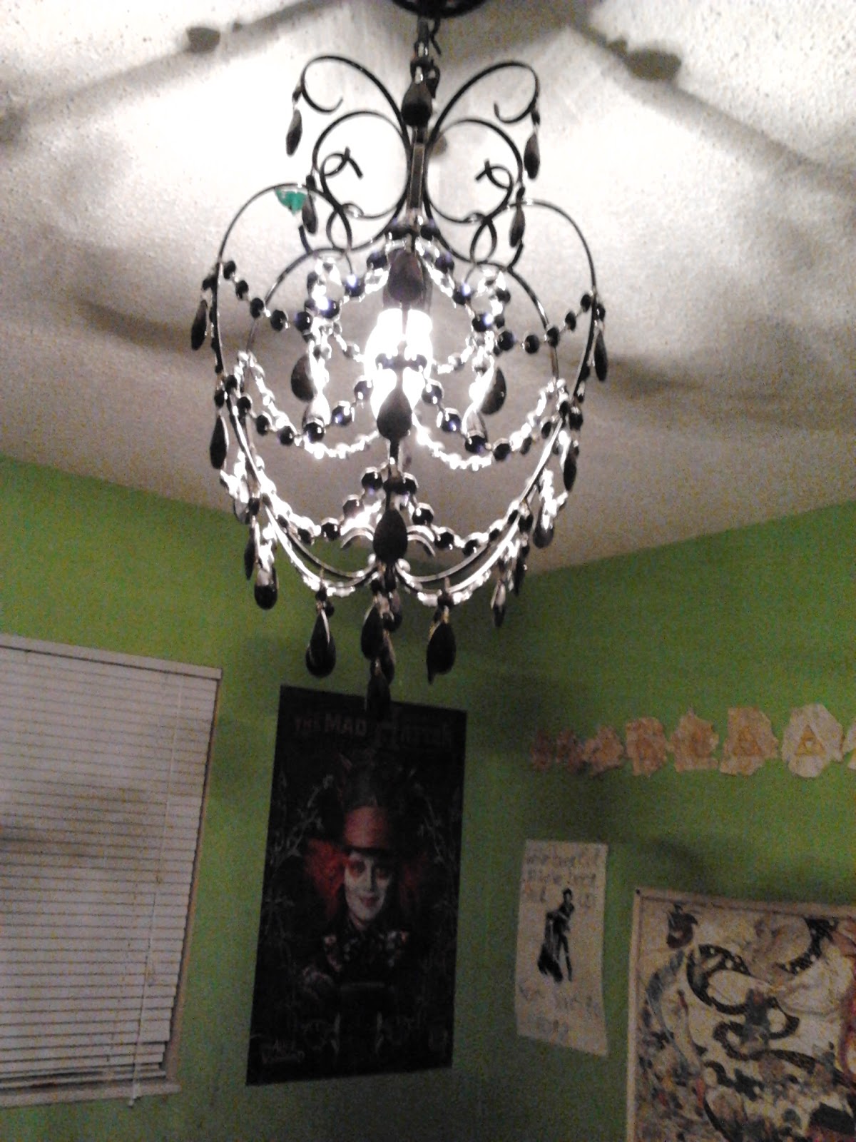 This is one of my most prized possessions. And yes, it is a light. Isn't it beautiful? My parents finally agreed that I needed a new light after they took my old one down to replace the bulb and found a ton of dead bugs in it. They said they would spend $50, so I looked around for a while. I fell in love with this one, but it was eighty, so I paid for the last $30 of it. Since it doesn't exactly match the rest of the house, my parents are going to let me take it when I move.